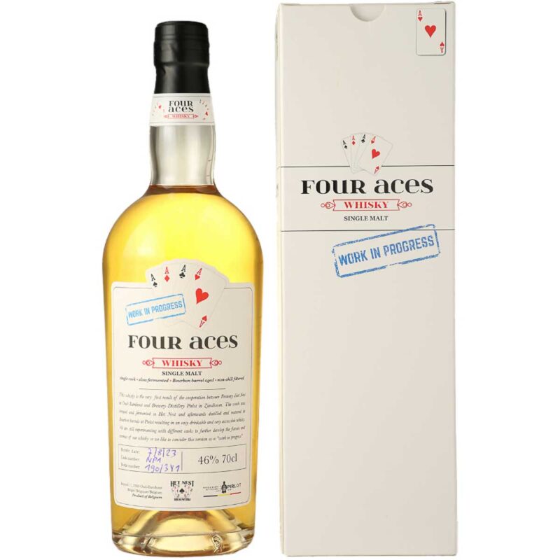 Four Aces single malt whisky is het resultaat van de samenwerking tussen brouwerij Het Nest uit Turnhout en brouwerij-distilleerderij Pirlot uit Zandhoven. De ‘whisky wash’ is afkomstig van Het Nest en nadien gedistilleerd en gerijpt bij Pirlot op bourbon vaten. Het is een gemakkelijk drinkbare en toegankelijke single malt Belgische whisky. Naast Kempisch Vuur, de whisky uit de Kempen, is er dan nu de Turnhoutse Belgische whisky.